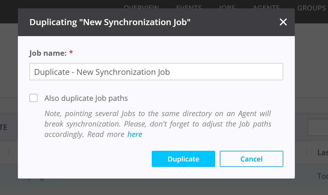 Once you have configured the job name and the duplication options, click the "Duplicate" button.