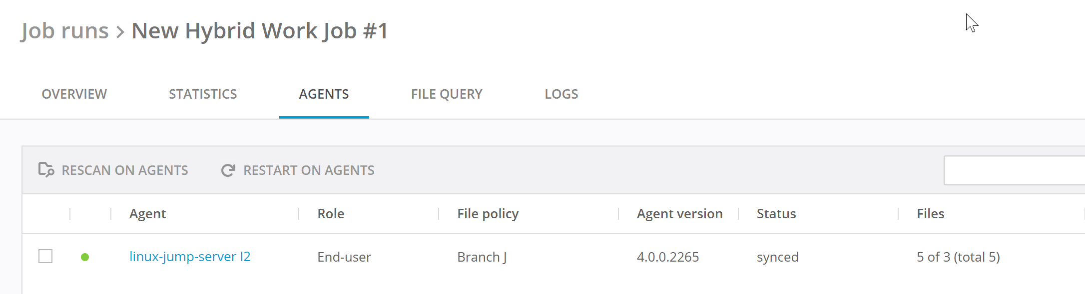 A Hybrid Work Job enables efficient collaboration between end-users. This data workflow type implements a combination of Primary Storage devices, Caching Gateways and Agents installed on end users' workstations for seamless access to shared files in the office, on the road or at home.