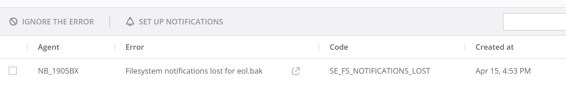 The error message appears if the storage does support file system notifications, but for a reason the Agent stopped receiving them: