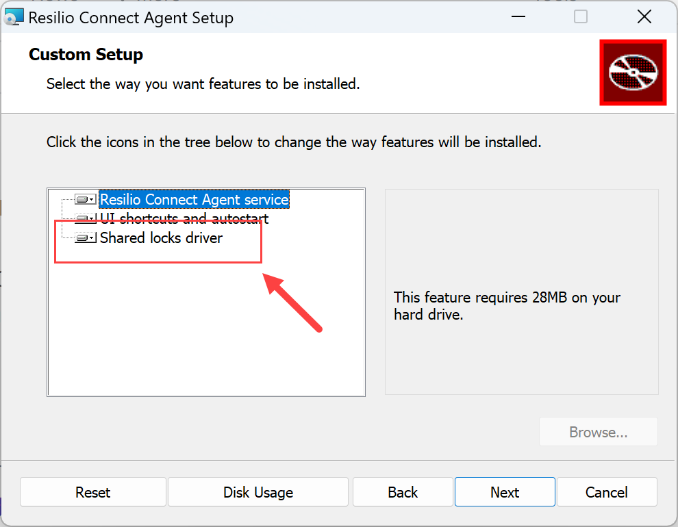 Install the Agent on each device, using an account with administrative privileges. Make sure to include the Share locks driver feature.