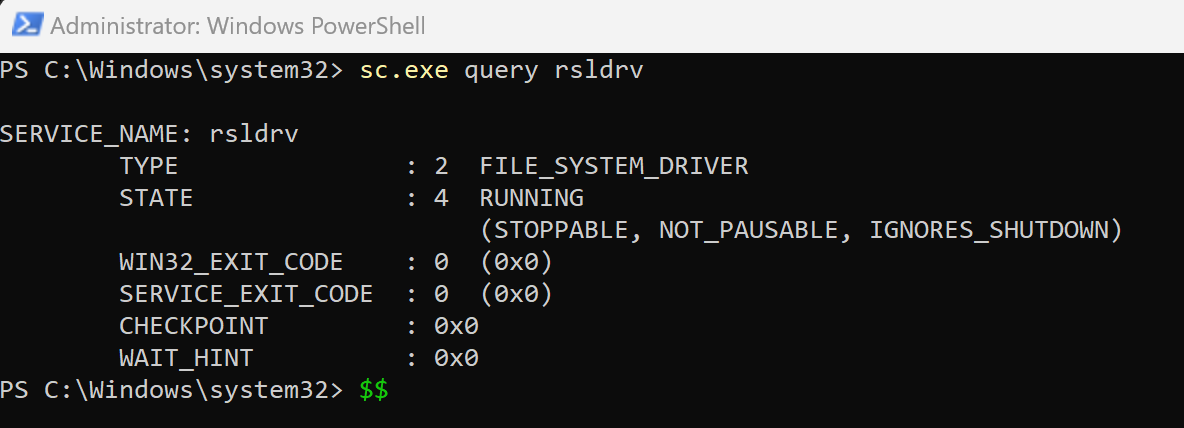 Ensure the Resilio File locking driver is running by querying its state in elevated Command Prompt or PowerShell using the command: sc.exe query rsldrv. Other commands are sc.exe query/start/stop rsldrv.