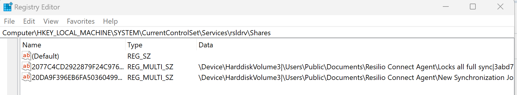 In the system registry the driver keeps the key records of the job folders with enabled file locking features (HKEY_LOCAL_MACHINE\SYSTEM\CurrentControlSet\Services\rsldrv\Shares).