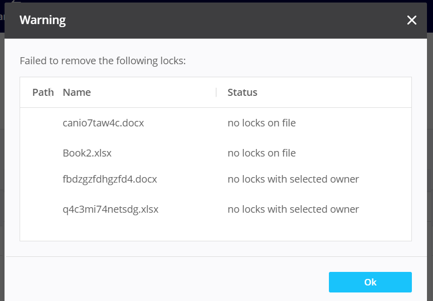 - manually from the File lock tab. Select a file (multi-selection is not supported) and click "Unlock".