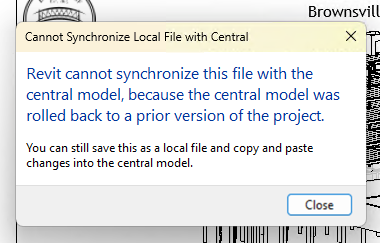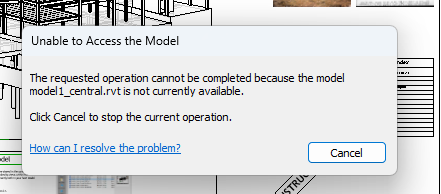 During sync, if one site updates the central model, the other site's users must wait for Resilio to replicate changes before syncing local model with central. While the message is being presented, Revit retries accessing the files, and once it successfully access files the message disappears and the model is synced correctly.