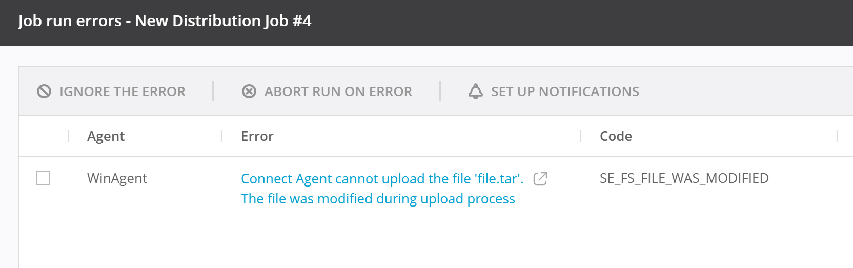 Connect Agent cannot upload the file. The files were modified during upload process