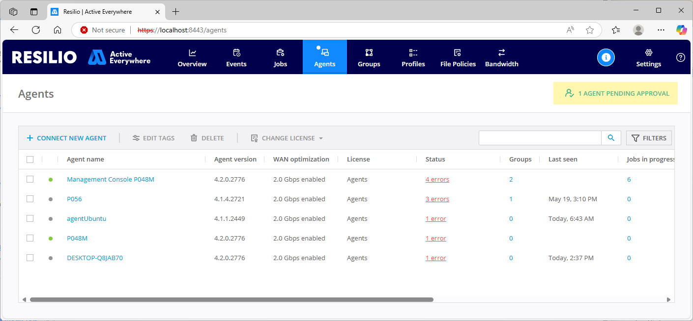 Resilio Management Console is a central interface for setting up agents, configuring sync and transfer jobs, and monitoring your job runs.