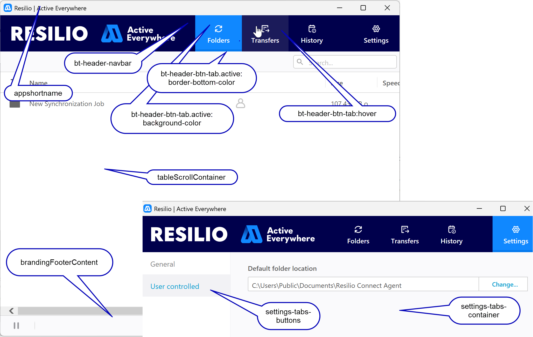 Resilio Active Everywhere allows you to add some branding customization to the Management Console and Agent UI.