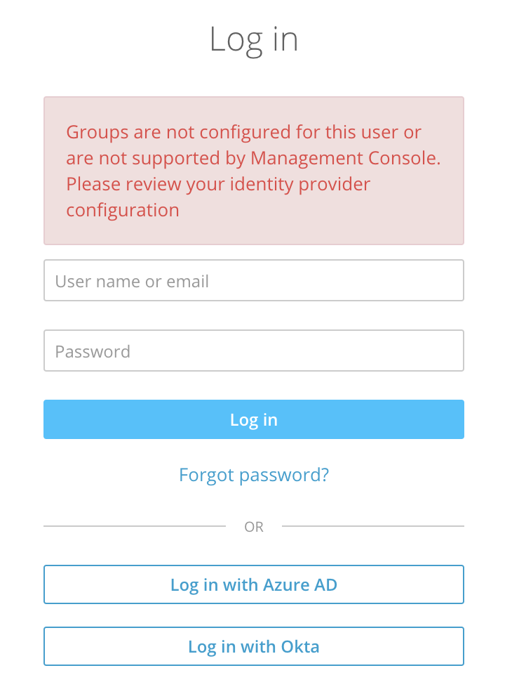 Groups are not configured for this user or are not supported by the Management Console