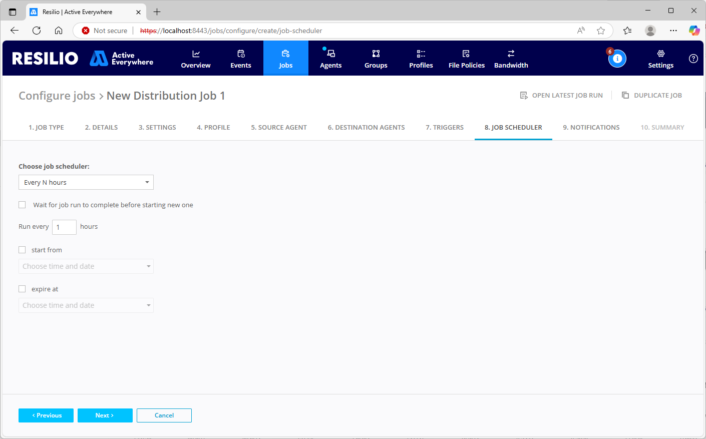 Note: The Job run will be initialized at the Agent's local time. A scheduled Job run will start only if the previous one has been completed no later than 5 minutes after the scheduled run time. For example:- A Job run is scheduled for 11:00 AM, but the Job run launched manually finished at 11:04 - the scheduled Job run will be initiated.