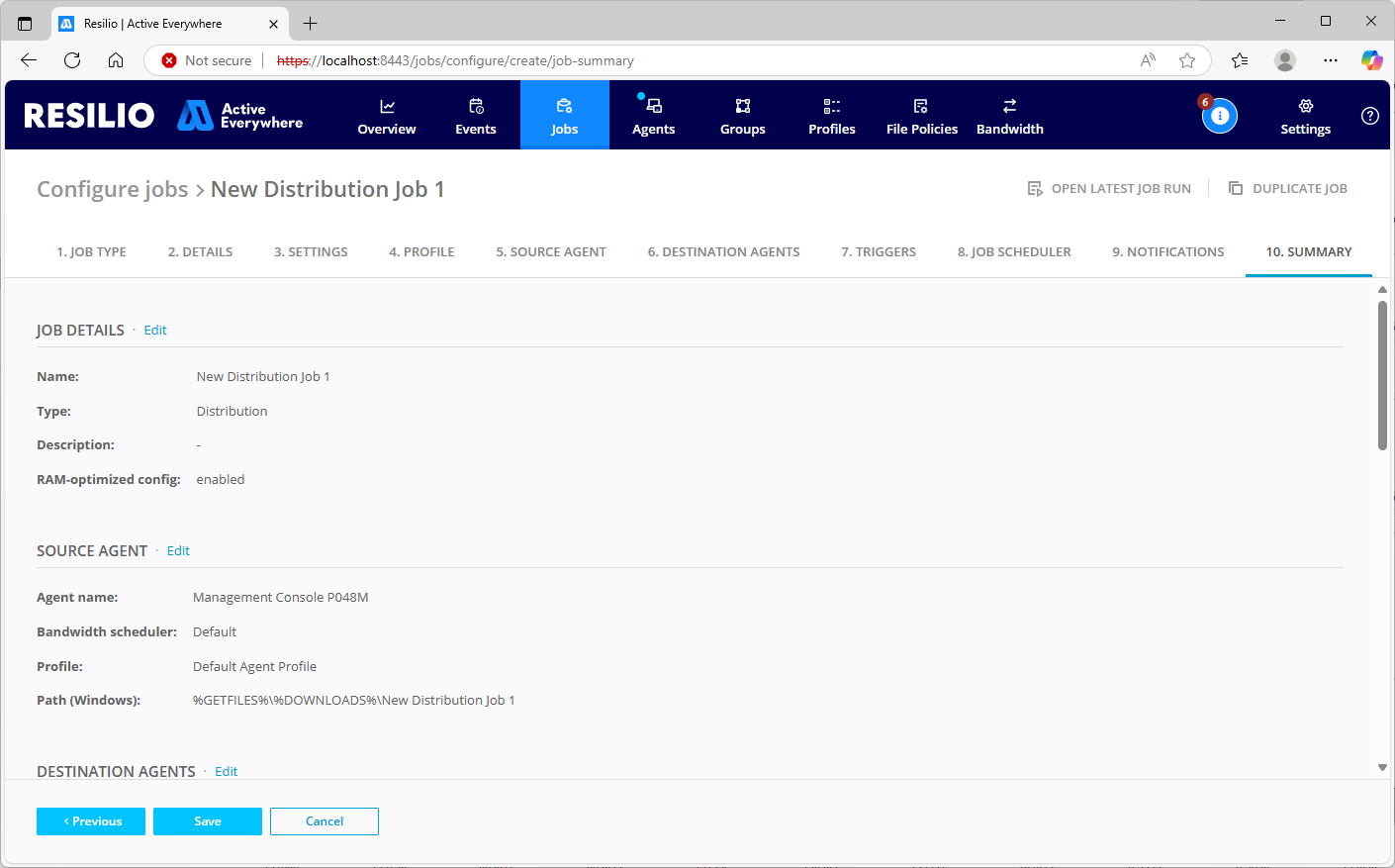 - On the SUMMARY tab, verify your Job's configuration, then click Save.