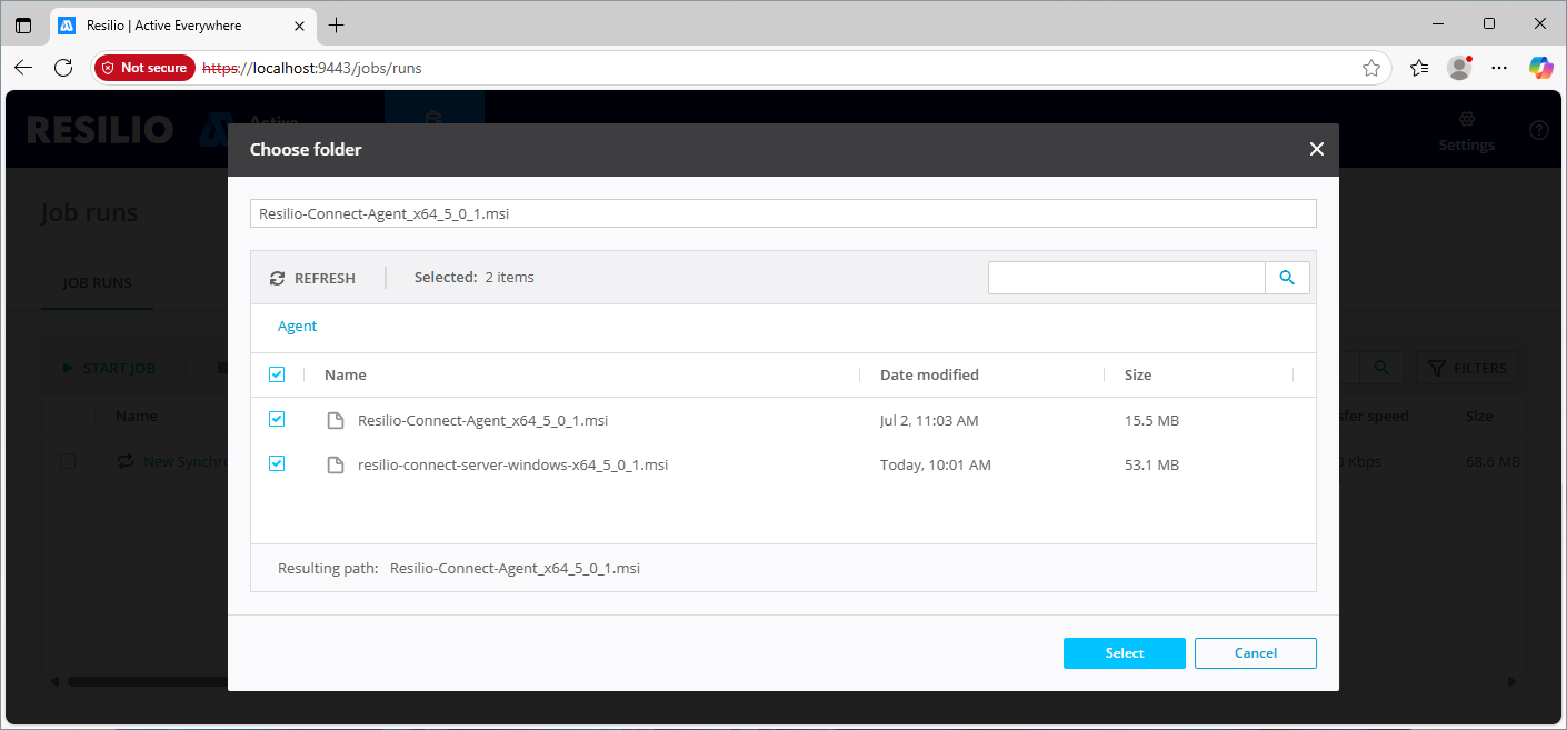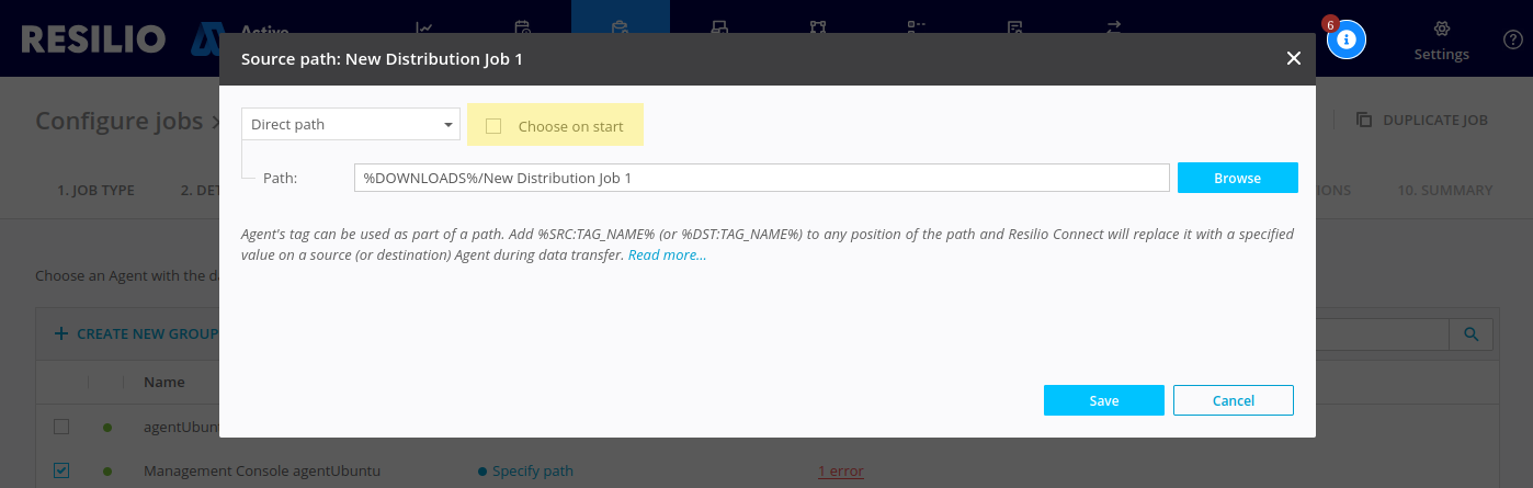 - You can browse the file system within the limits defined for the job by the Resilio administrator.