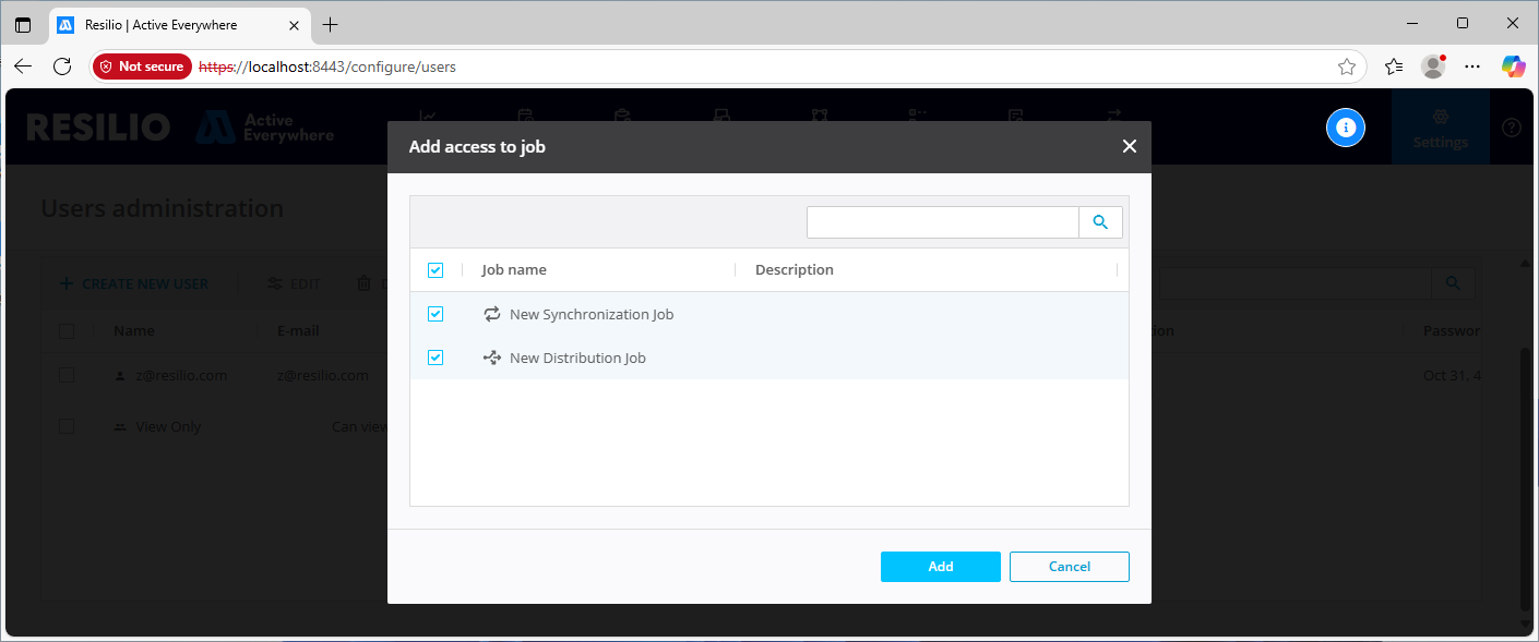 - If a partner is logged in and the Resilio administrator makes a change in the job access, the partner user will be logged out and will have to log in again.