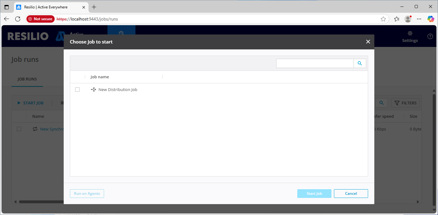 Data Managers Console is a dedicated web interface allowing a specific user group to run pre-configured Distribution jobs or monitor Synchronization jobs. This enables facilitating on-demand data transfers between Resilio Agents without having to involve the Resilio administrator.