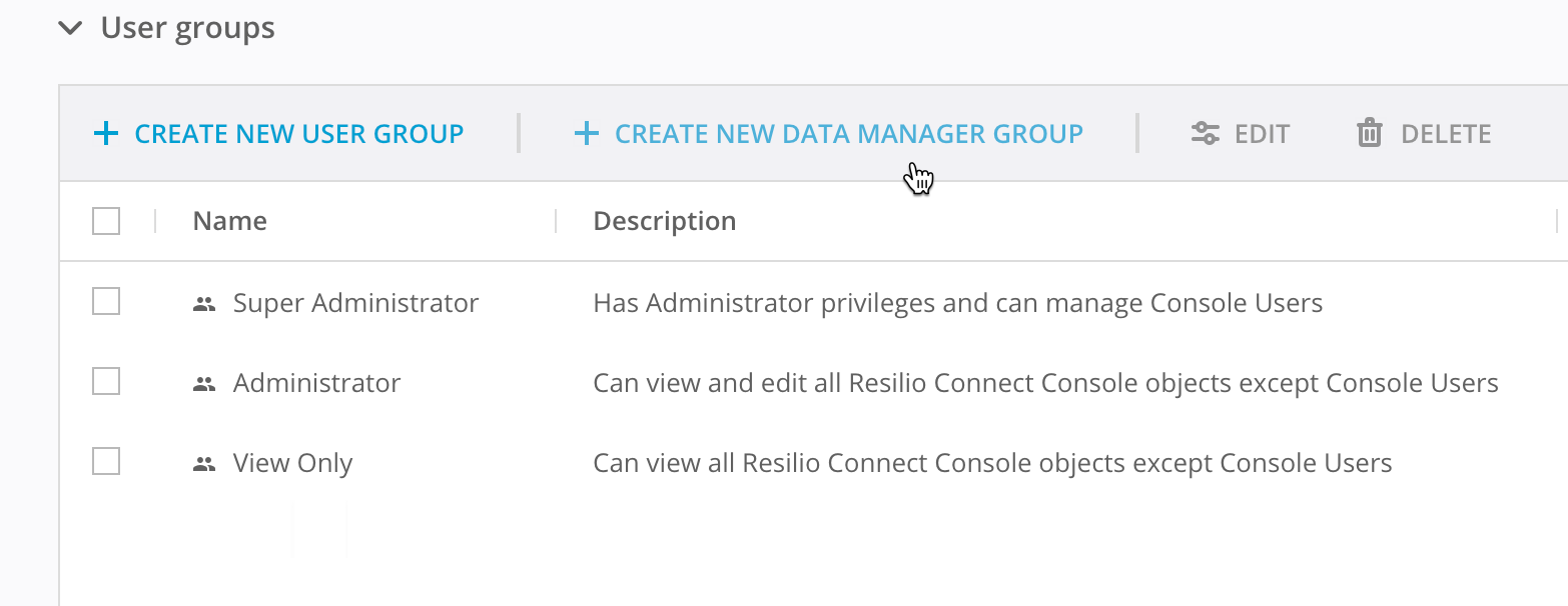 Partner groups are dedicated user groups allowed to access the Data Managers Console.