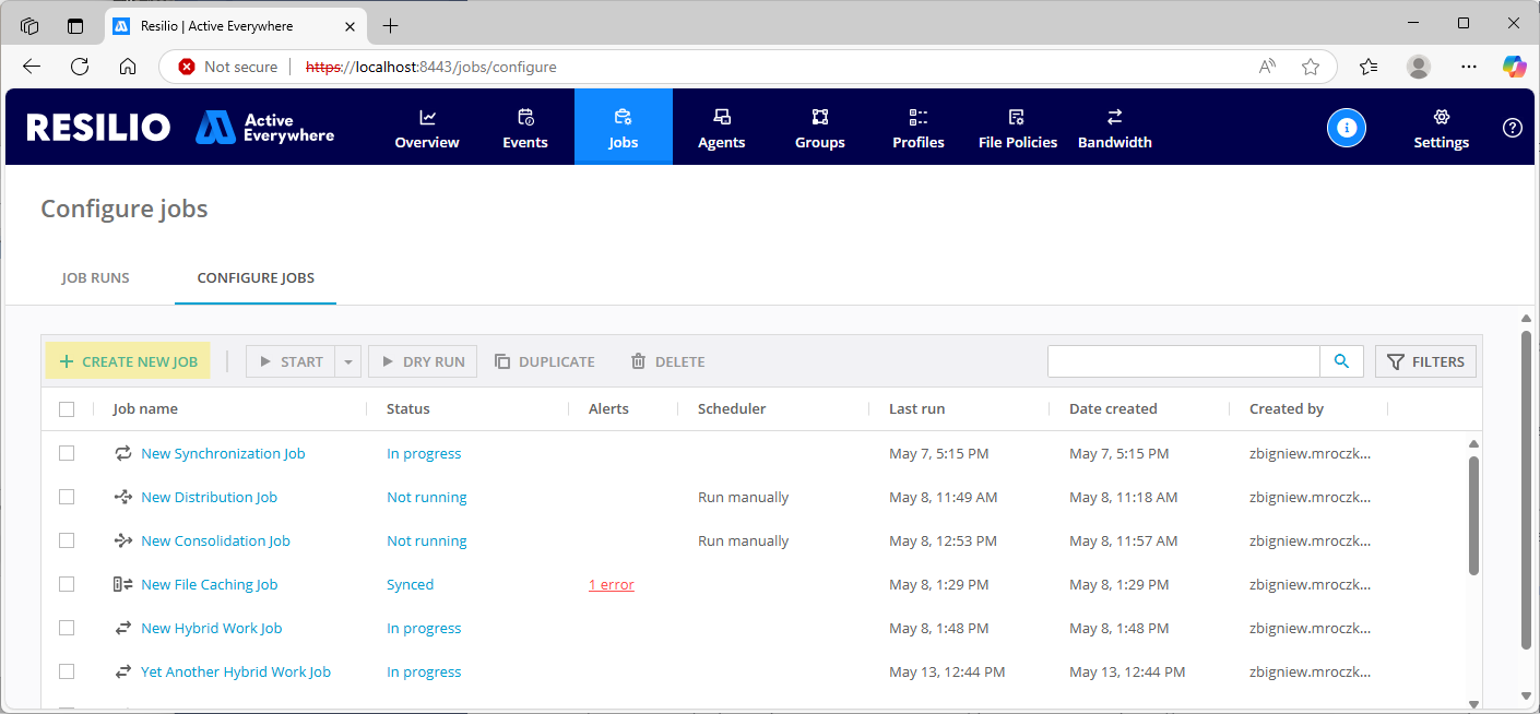 - Select Configure Jobs, then click + CREATE NEW JOB.